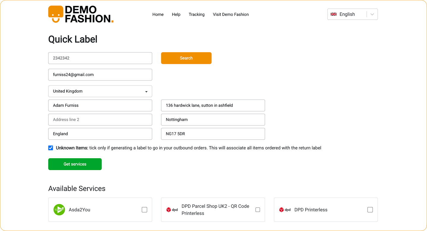 To support this, Ezi Returns Label Portal now allows sellers to generate return labels for unknown items when using the Quick Label feature. Simply tick the 'Unknown items' box, and click 'Get Services' to select your label.